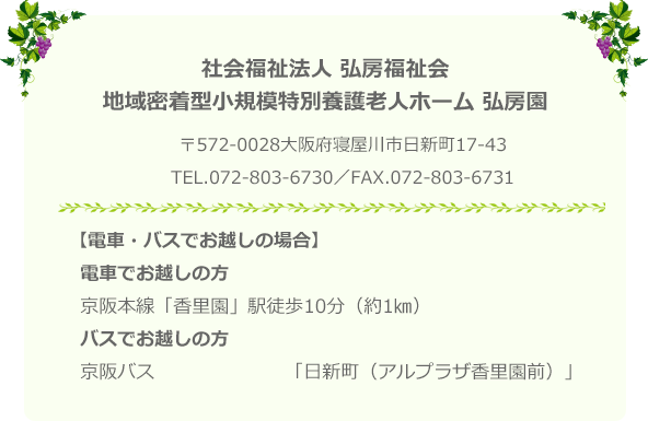 平成27年4月 寝屋川市日新町に新規オープンする地域密着型小規模特別養護老人ホーム 弘房園